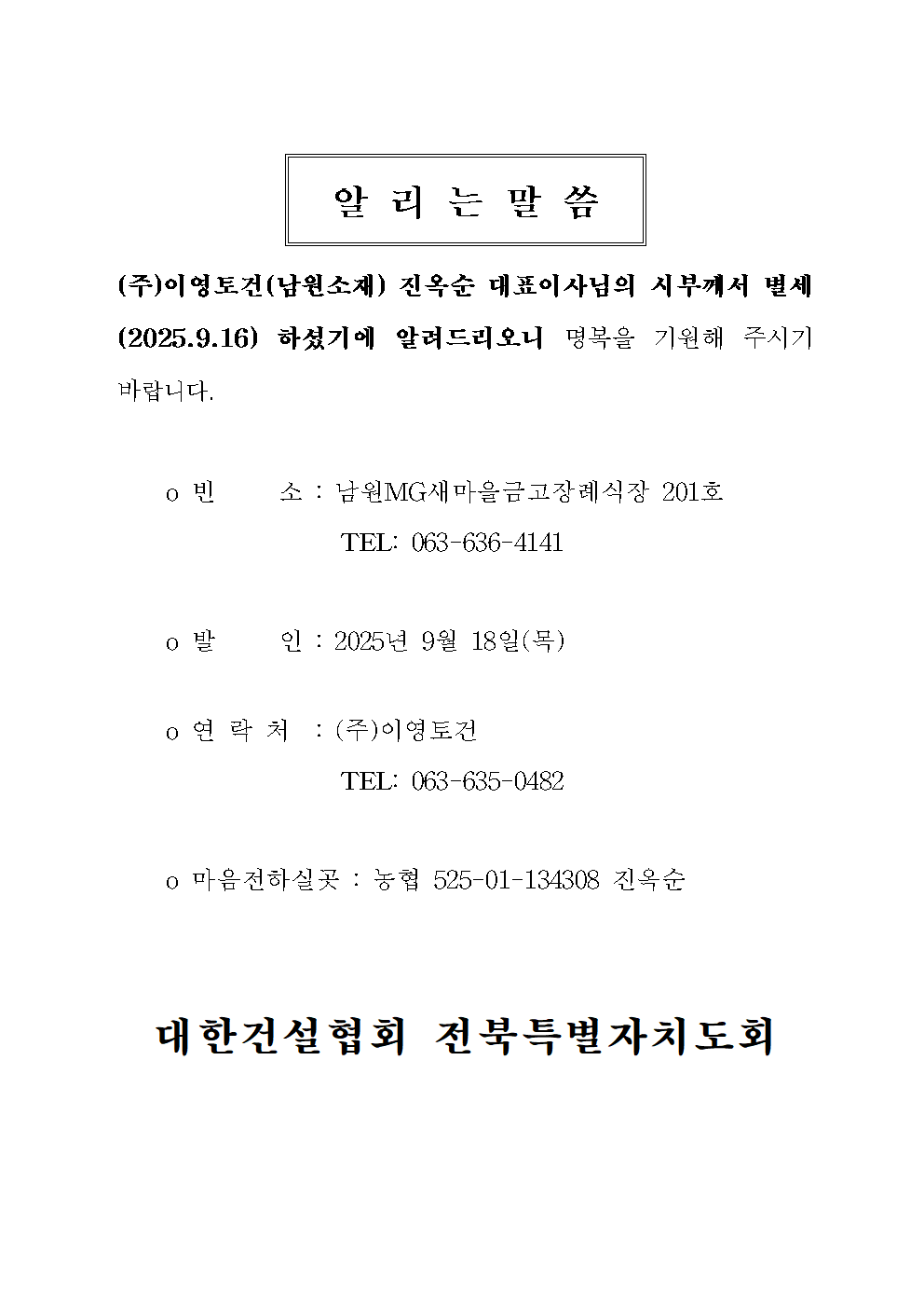 [2025.09.25] (유)성우토건 최현순 대표 시모상