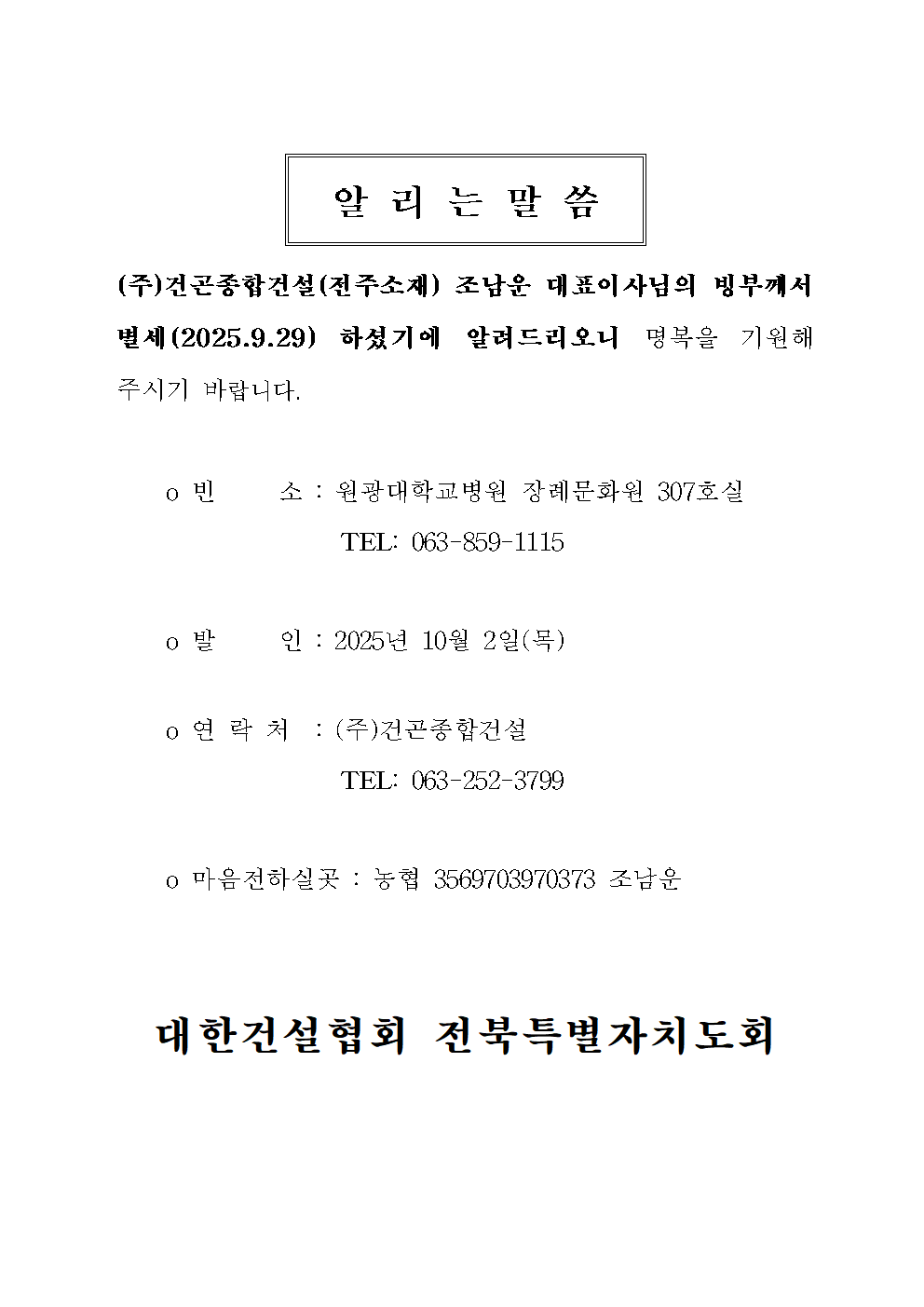 [2025.09.25] (유)성우토건 최현순 대표 시모상