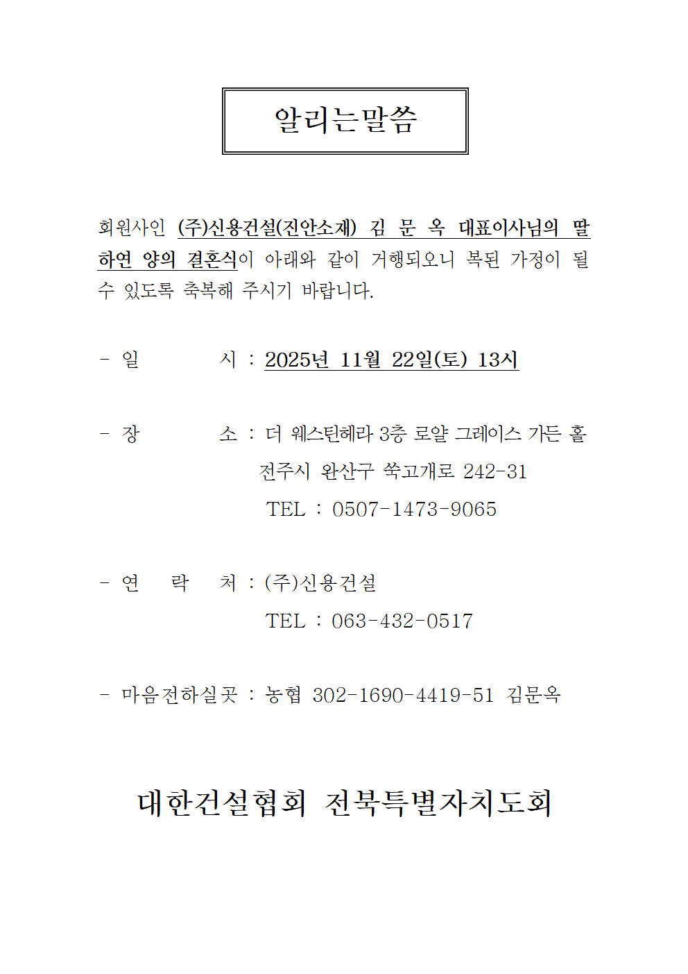 [2025.11.22] 지원종합건설(주) 황호영 대표 딸 결혼