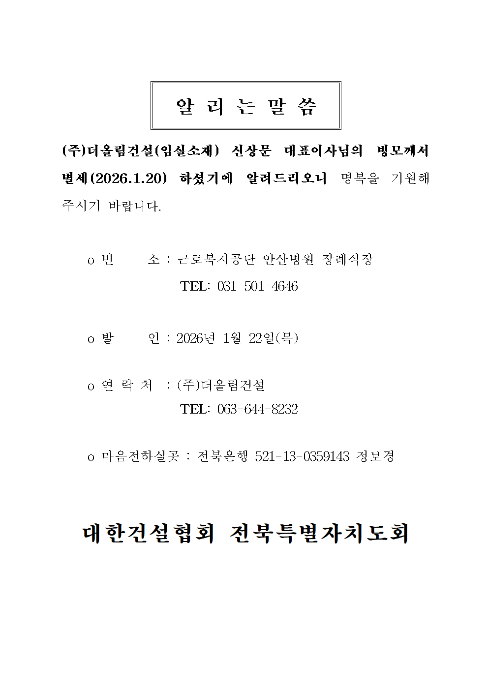 [2026.01.19] (유)삼운종합건설 임용호 대표 모친상